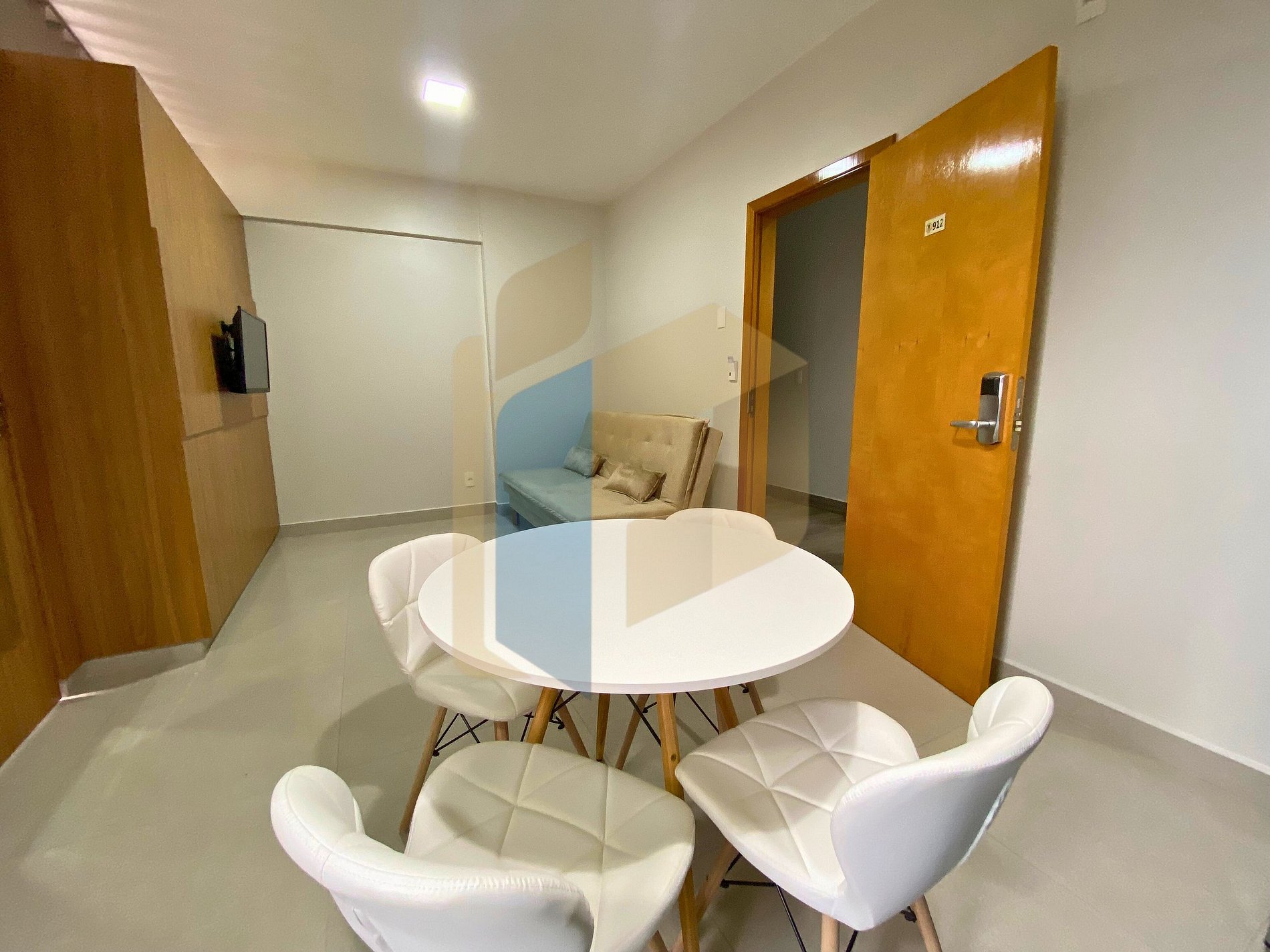O condomínio conta com 168 apartamentos distribuídos em um edifício moderno de 12 andares, com elevador e recepção 24 horas, garantindo comodidade e segurança durante toda a estadia.